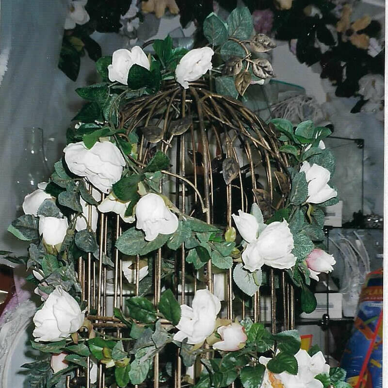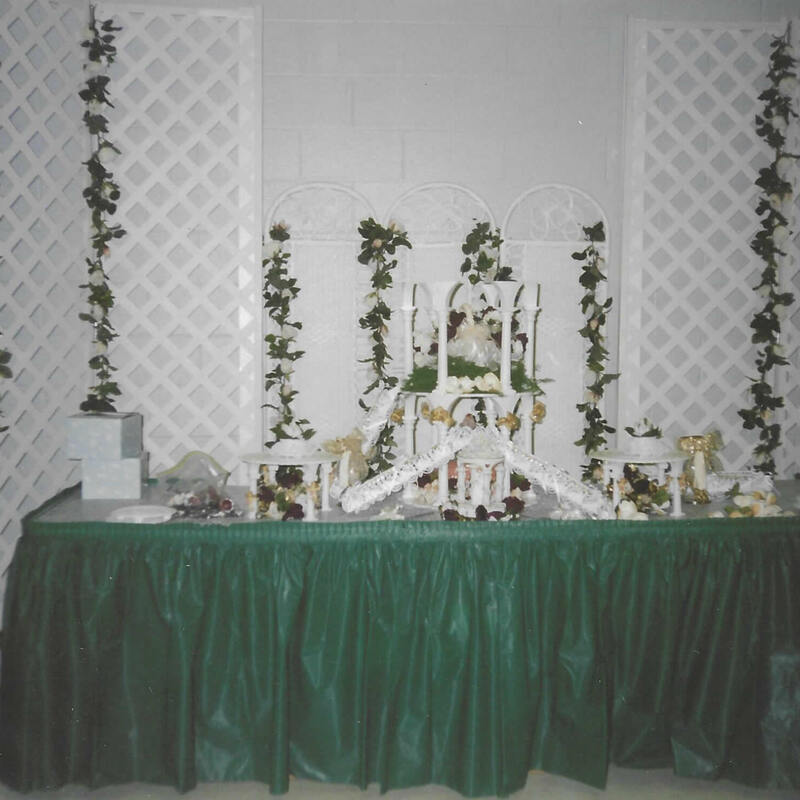 FLOWERS, LATTICE WALLS, ANGEL FOUNTAINS, PILLARS, ARCHWAYS, CANDELABRAS, AND CARD BOXES.