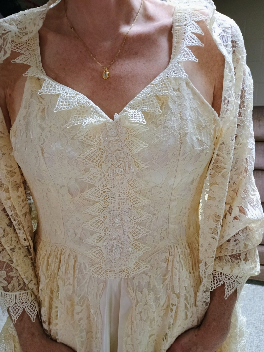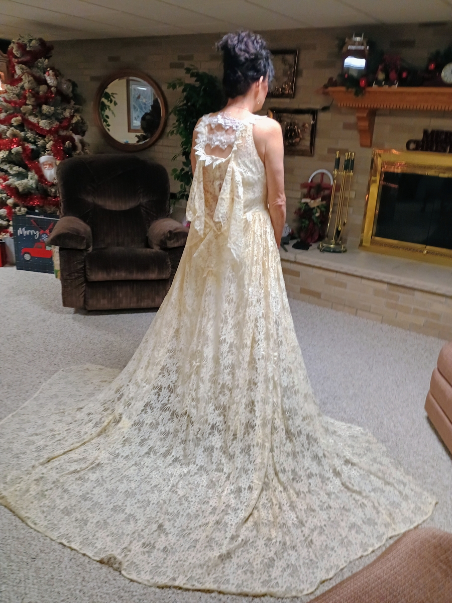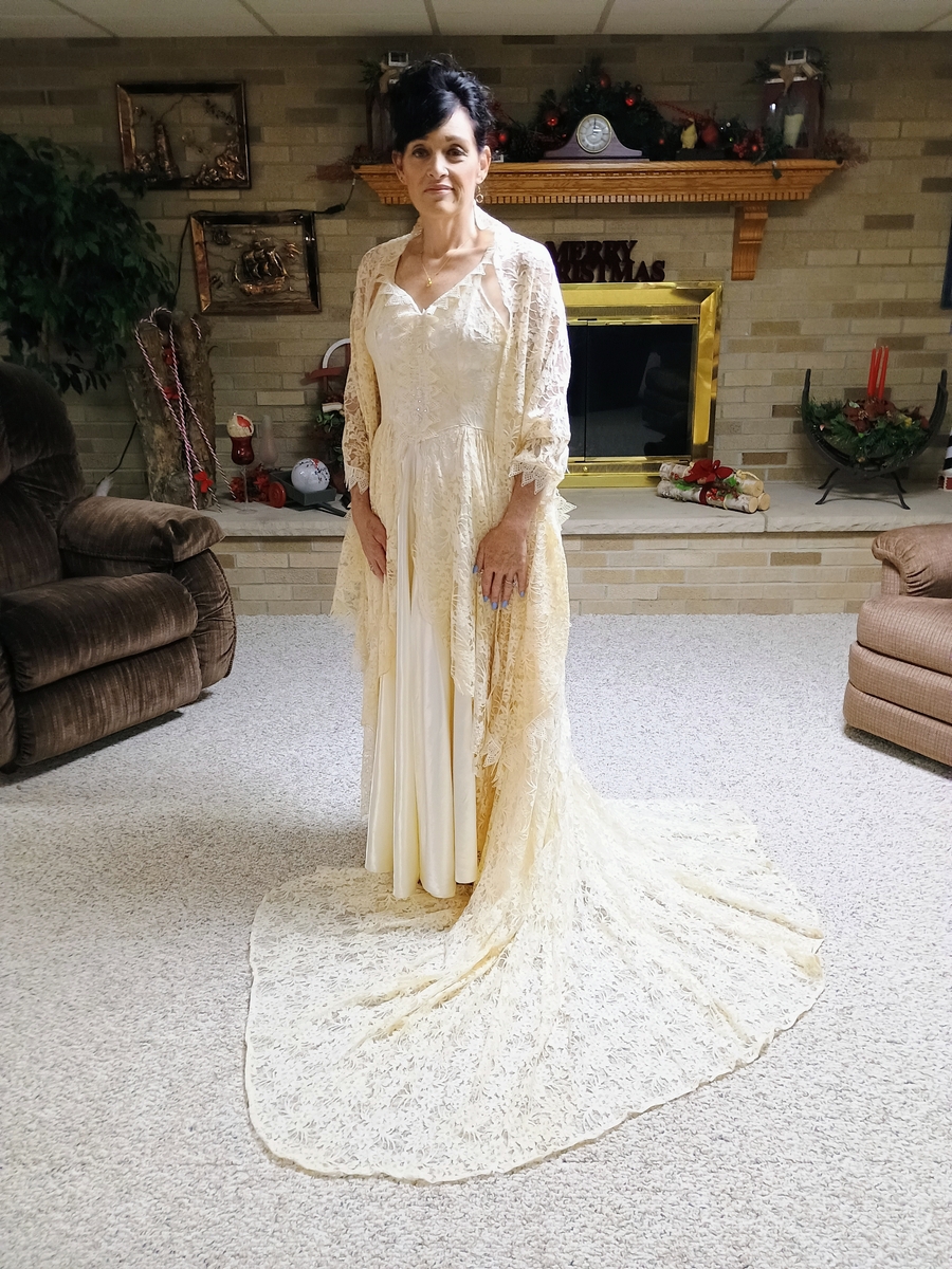 Recently, I was asked if I could restored a very old Wedding dress. In short. I cleaned it, changed the size, add the train and some extras.